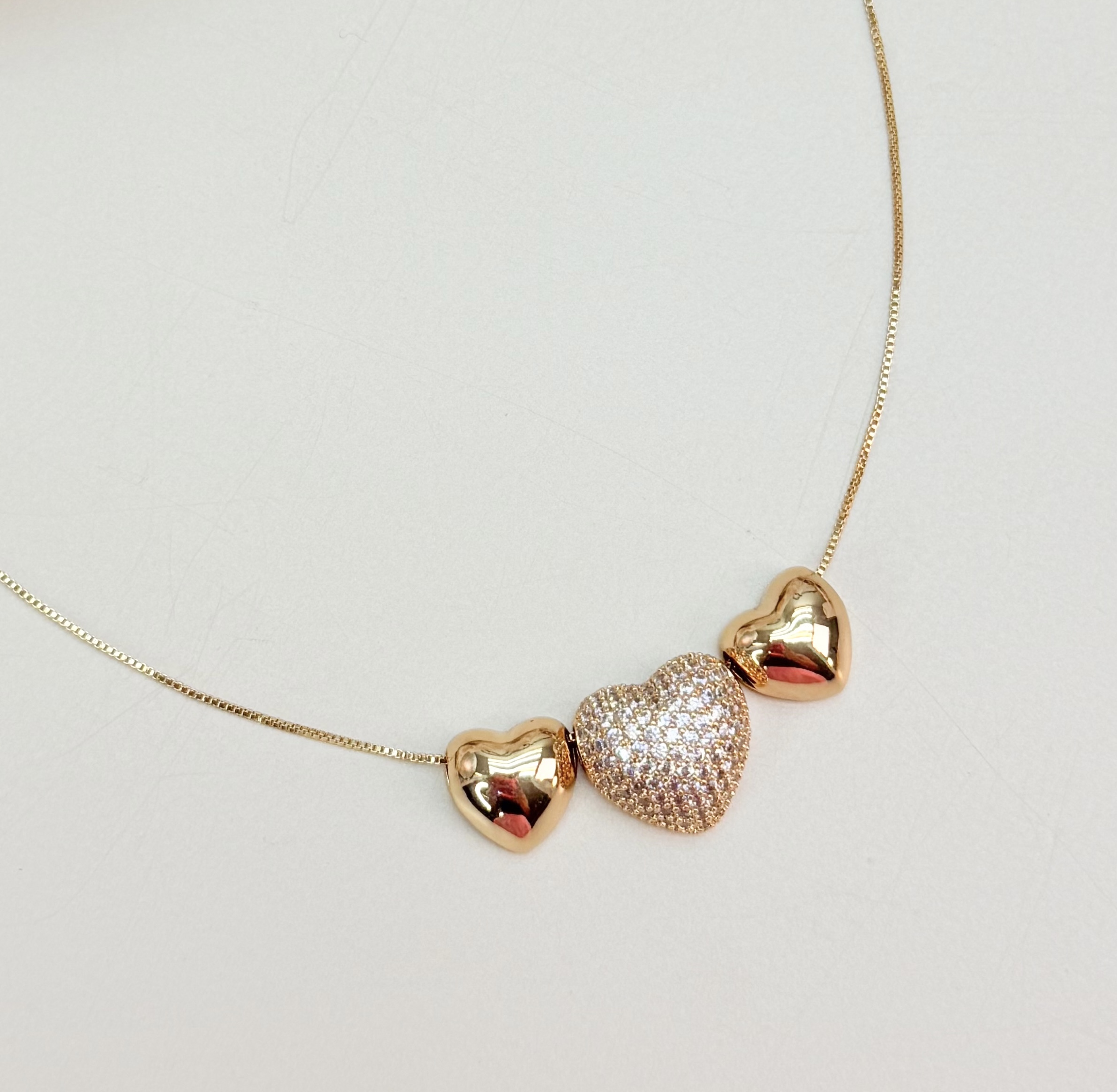 Colar GRACE trio de corações cravejados zirconias folheada a ouro