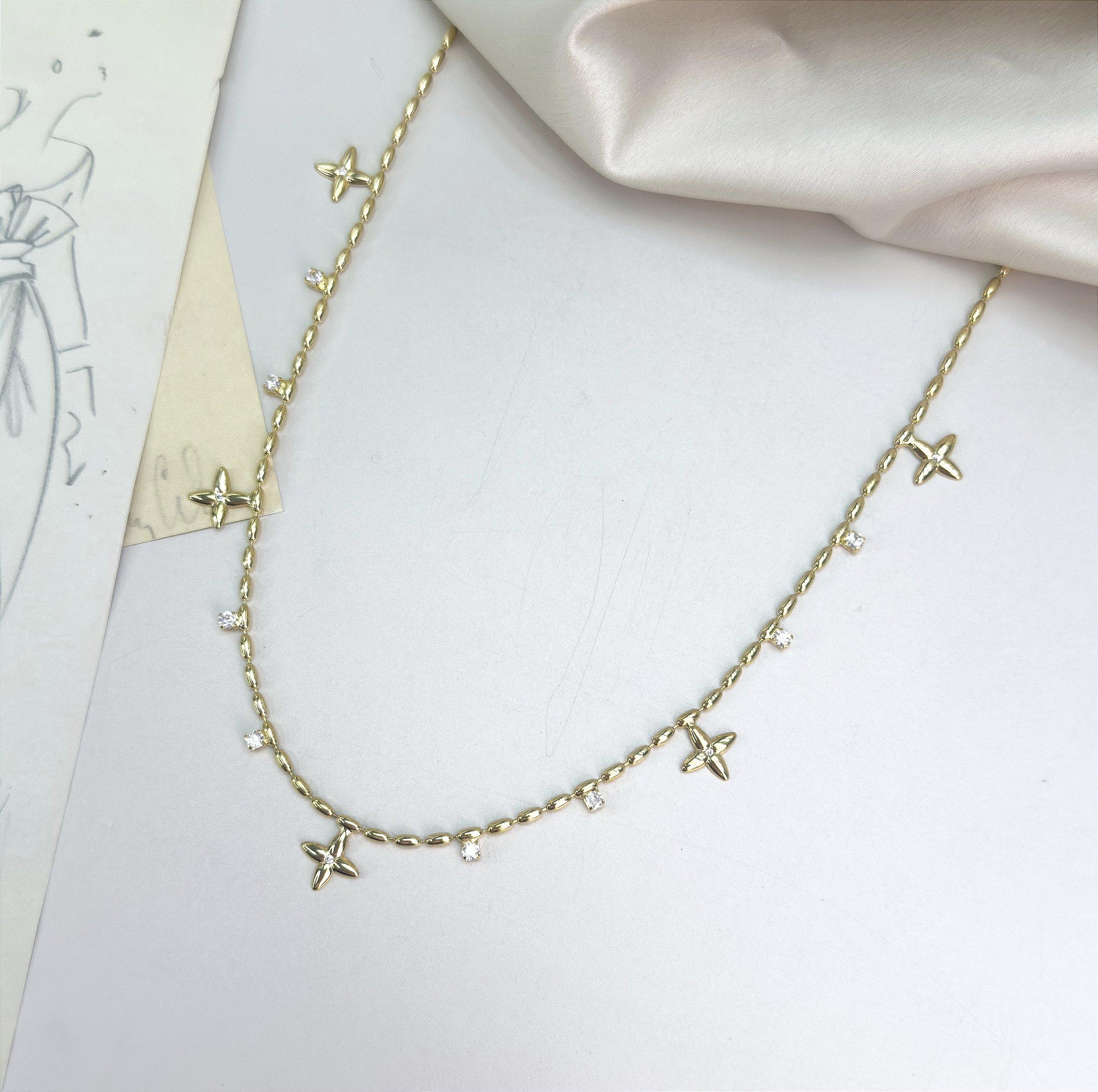 Colar CASTIEL estelas e pontos de luz folheado a ouro