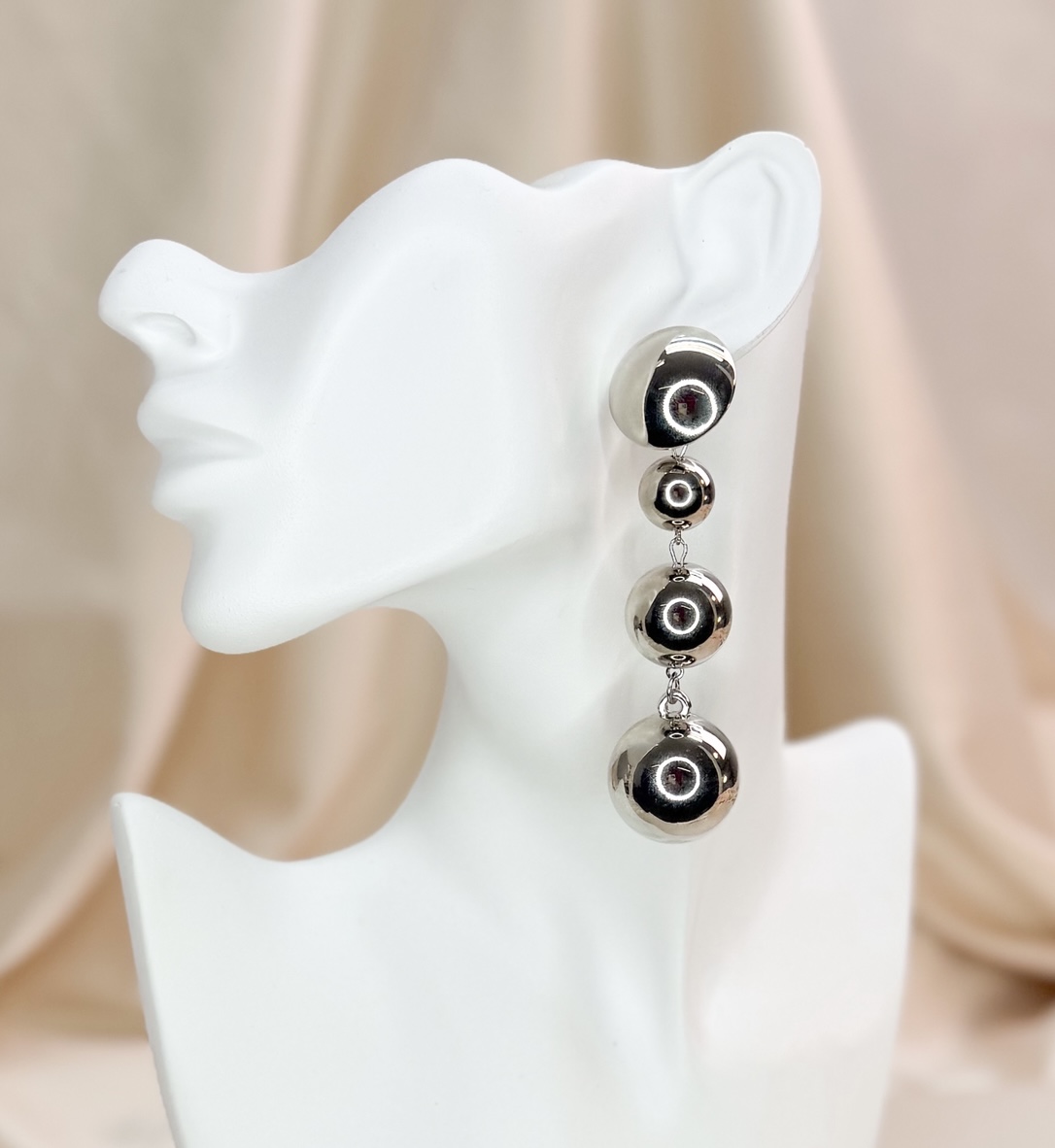 Brinco ELLIS longo com esferas folheada a prata