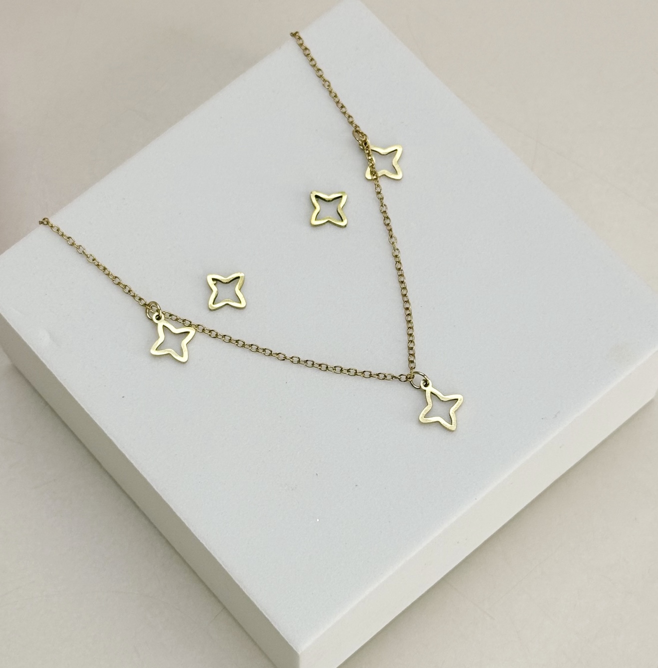 Conjunto JIM colar trevos vazados folheada a ouro