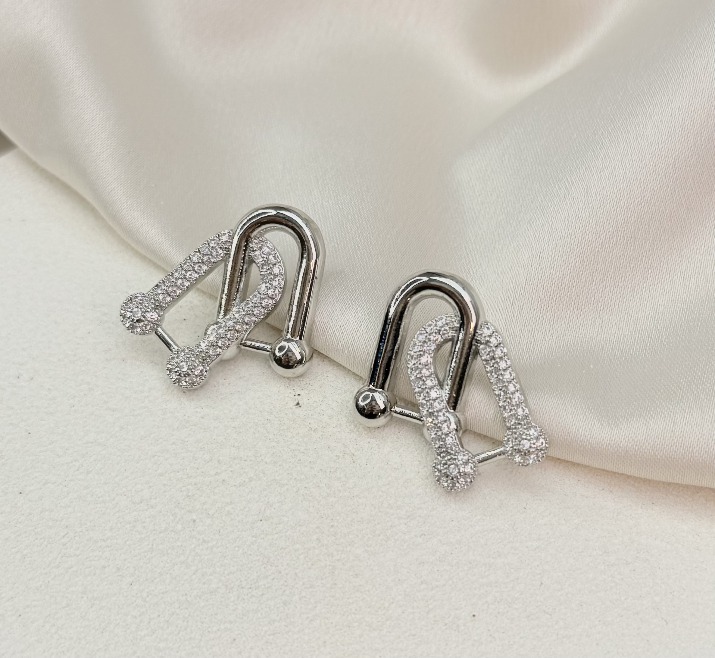 Brinco TIRNI M elos inspiração alta joalheria cravejados com microzirconia folhada a prata