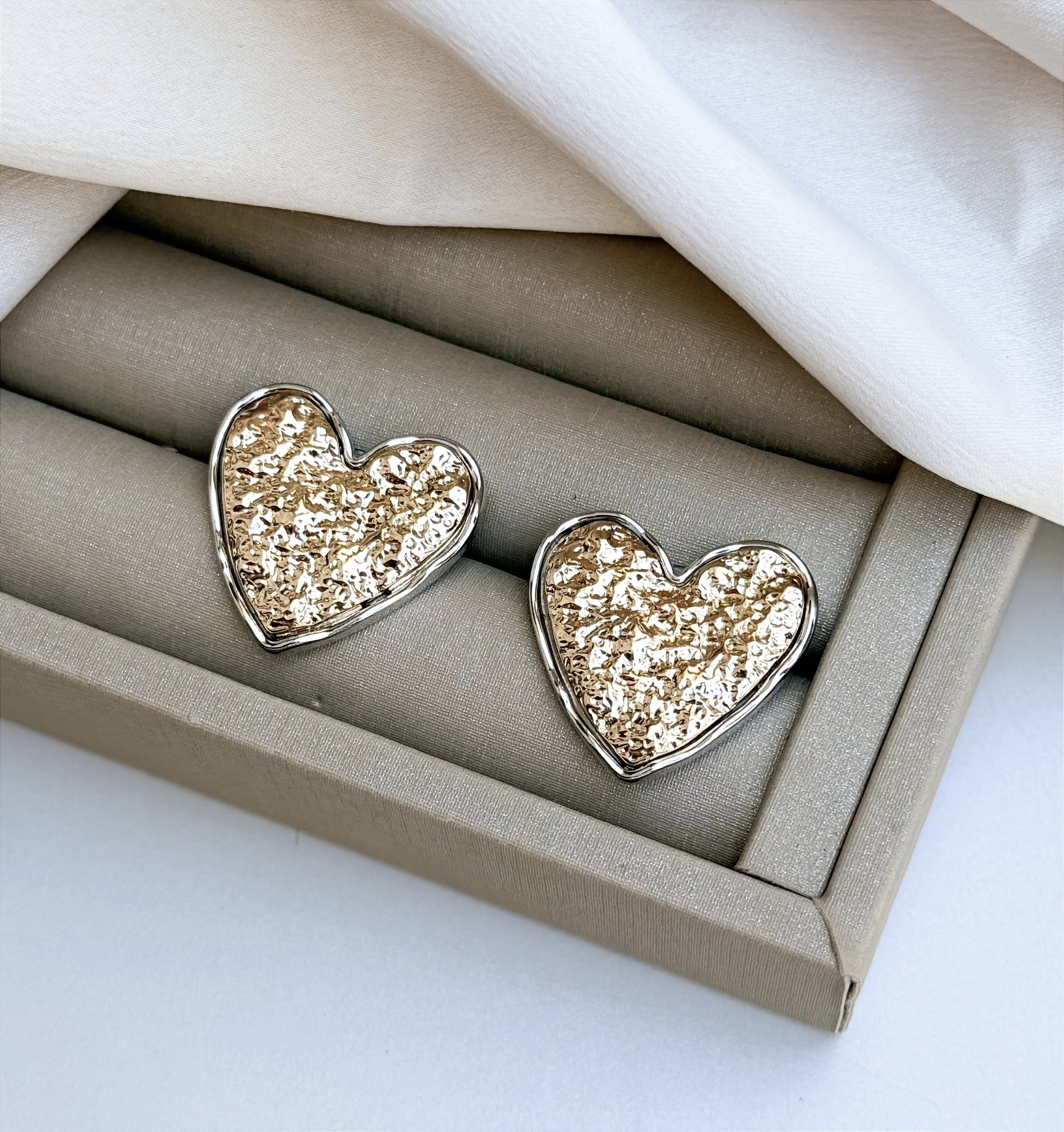 Brinco CALUM coração boton martelado dourado com prata