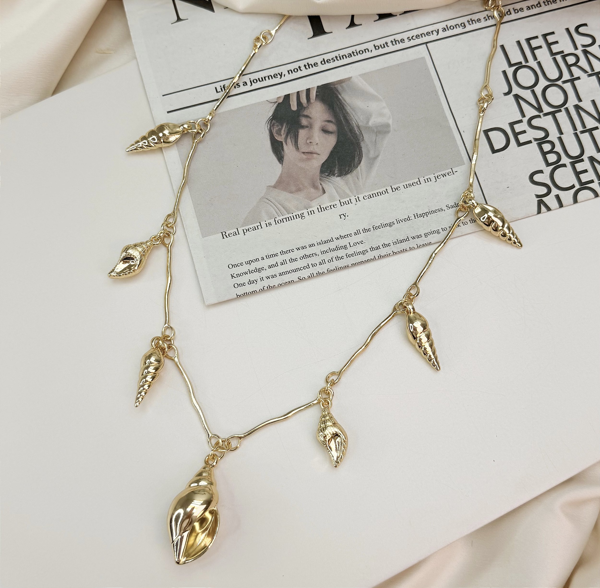 Colar IPANEMA longuinho concha maior folheado a ouro