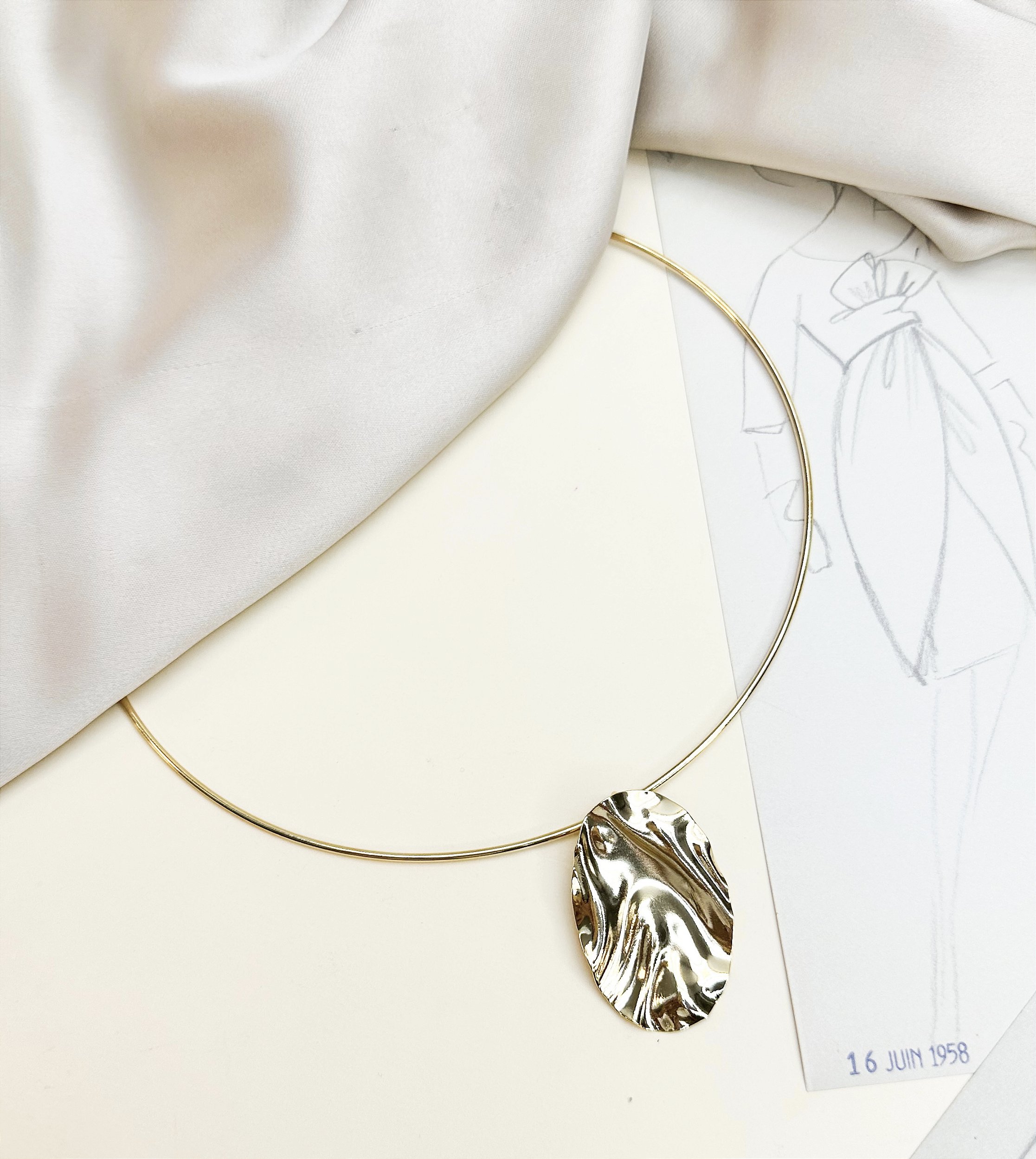 Choker ELANIA aro pingente vazado martelado folheada a ouro