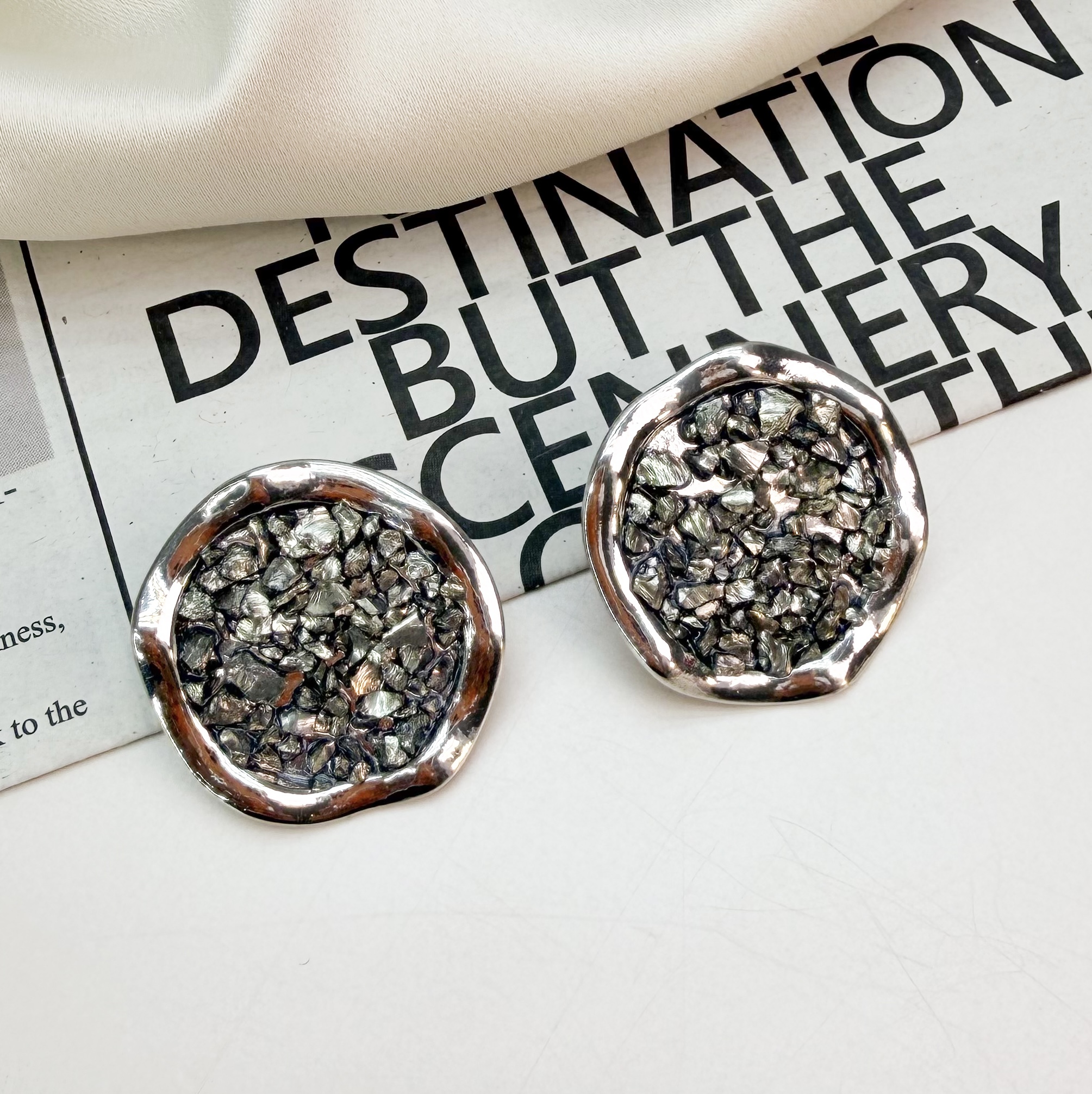 Brinco LIBRE boton redondo DRUZA folheada a prata