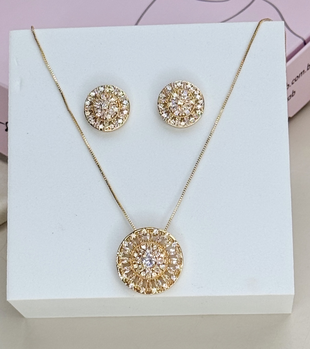 Conjunto COLOMBO colar e brinco cravejado zirconia folheada a ouro