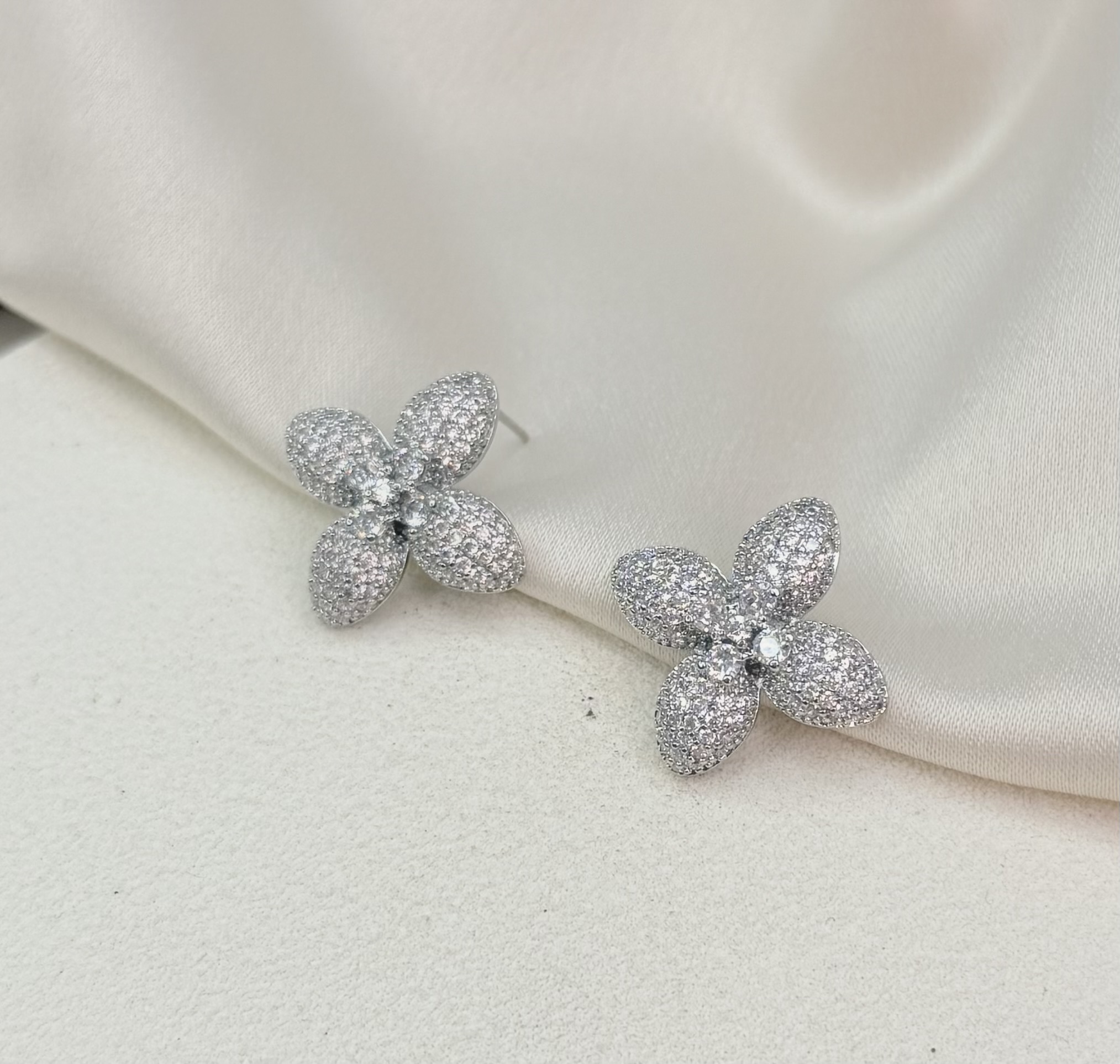 Brinco PALERMO flor cravejada com microzirconia folhada a prata