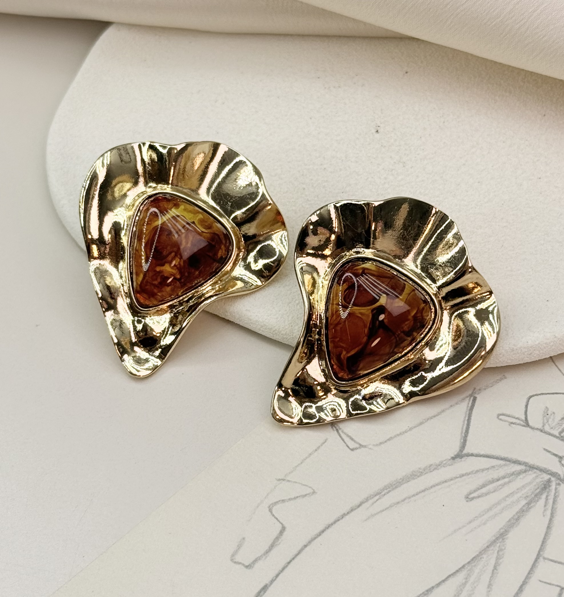 Brinco TARTE organico pedra CARAMELO folheada a ouro