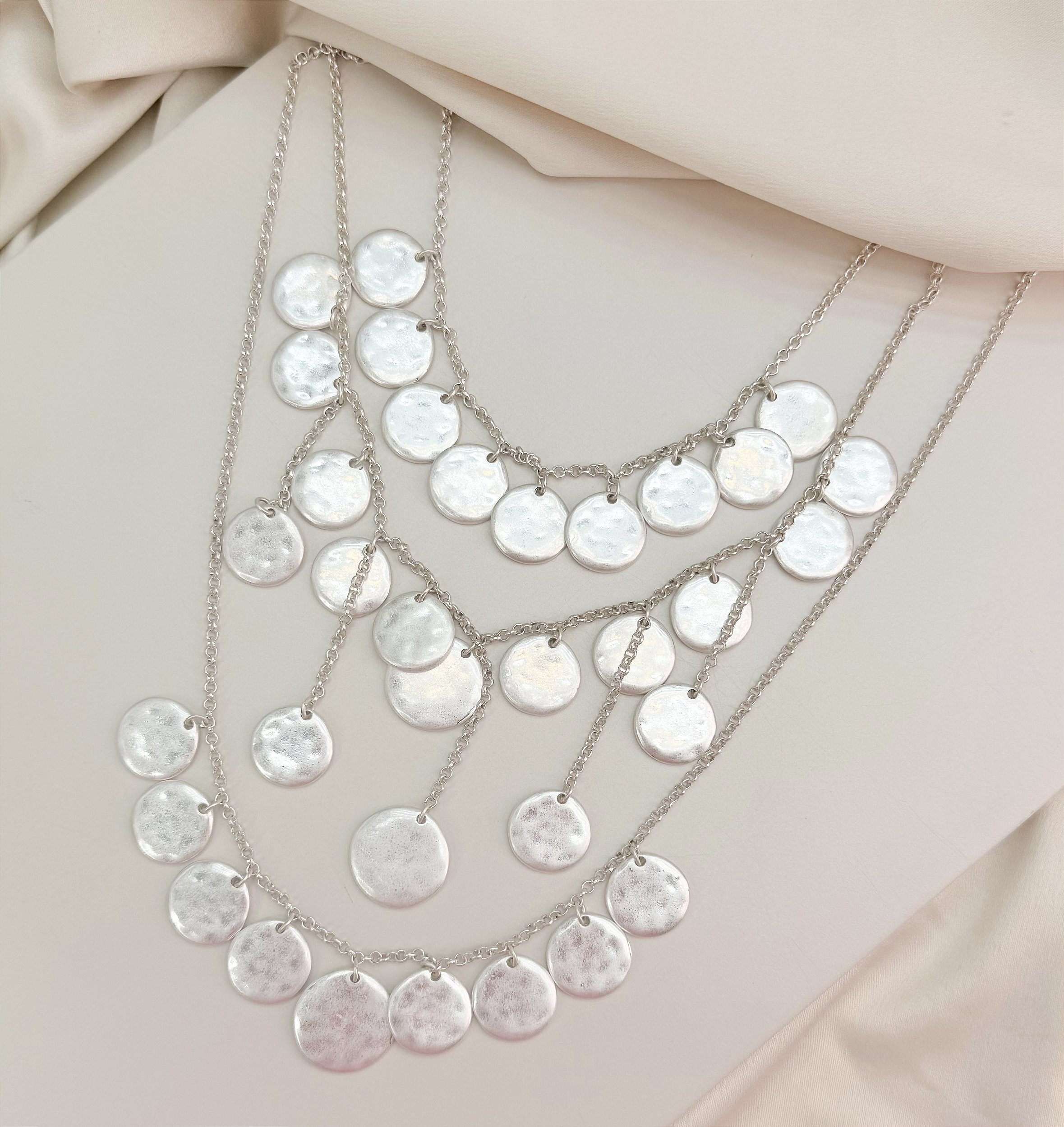Colar MERIDA triplo medalhas foscas prateadas