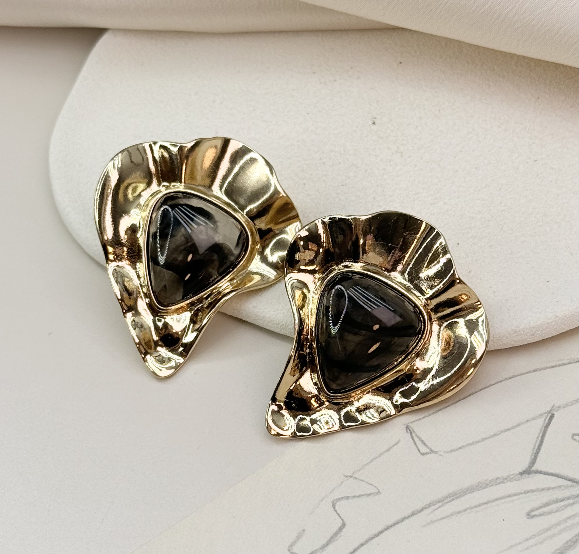 Brinco TARTE organico pedra PRETA folheada a ouro