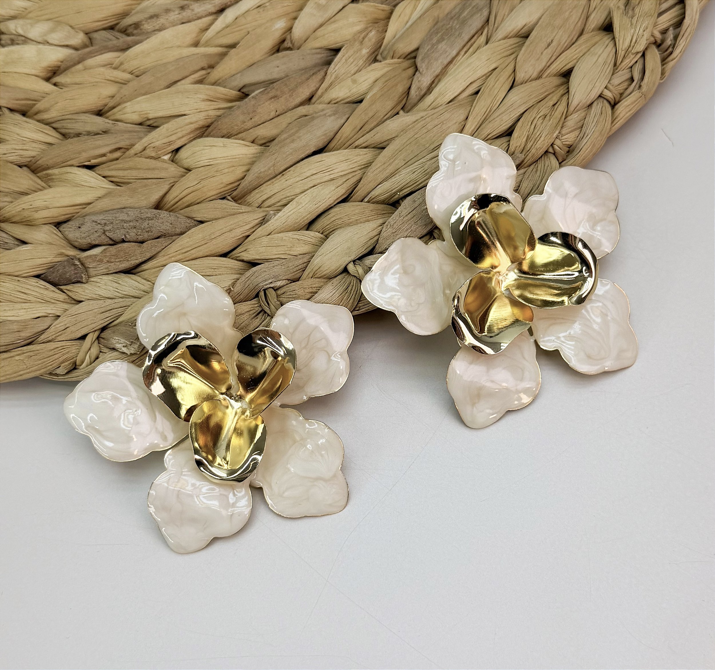 Brinco ATALAIA max flor madre perola e folheada a ouro