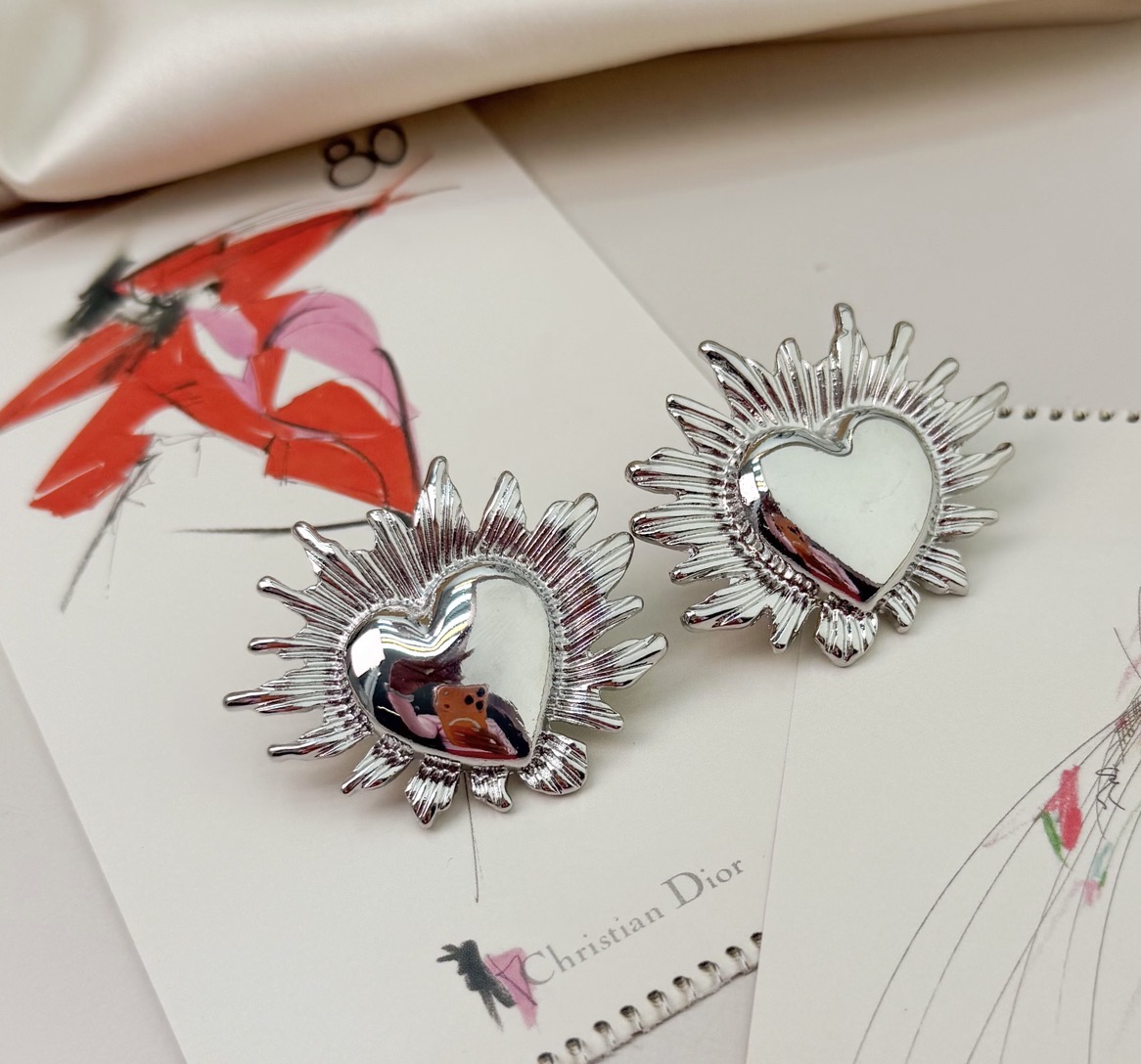 Brinco EROS coração em chamas folheada a prata