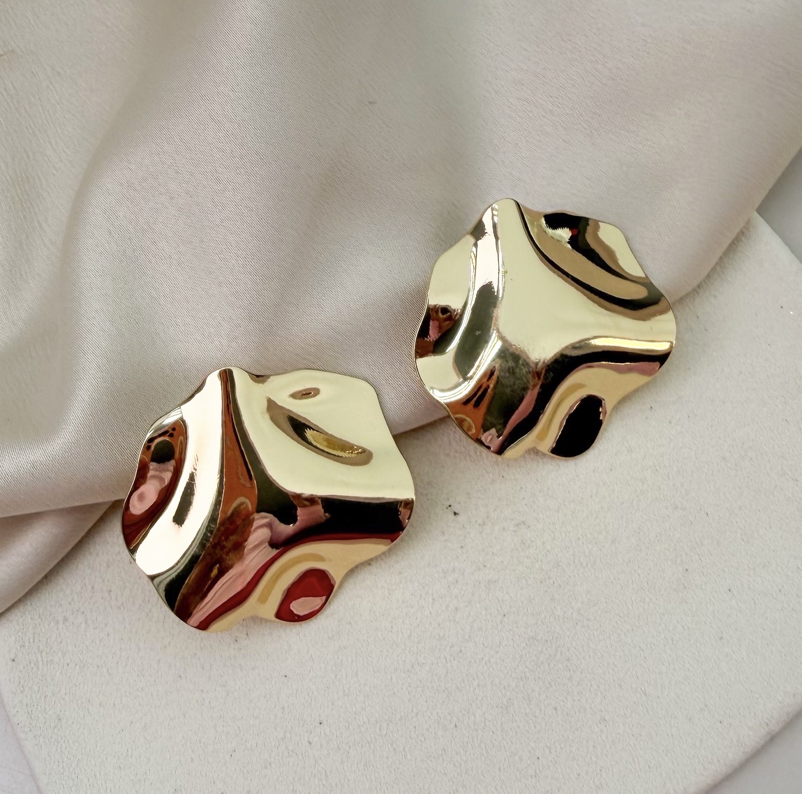 Brinco VICENTE circulo orgânico martelado folheada a ouro