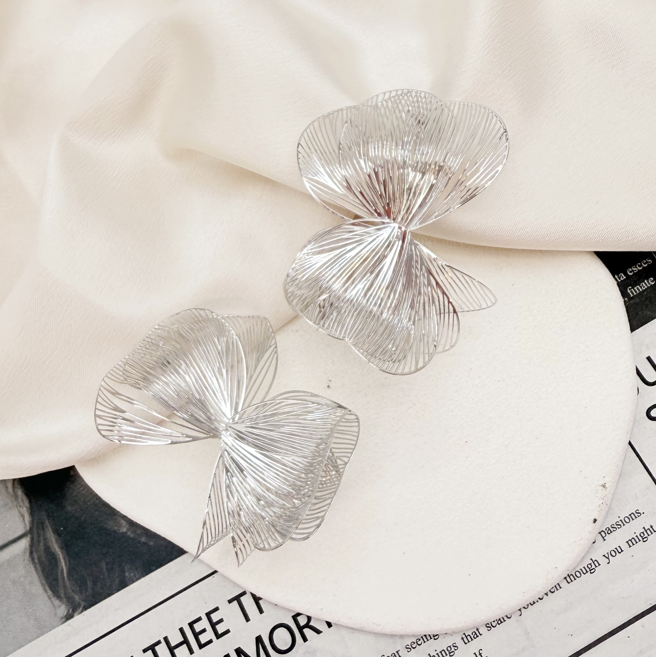 Brinco ROSETA media flor 3D folheada a prata