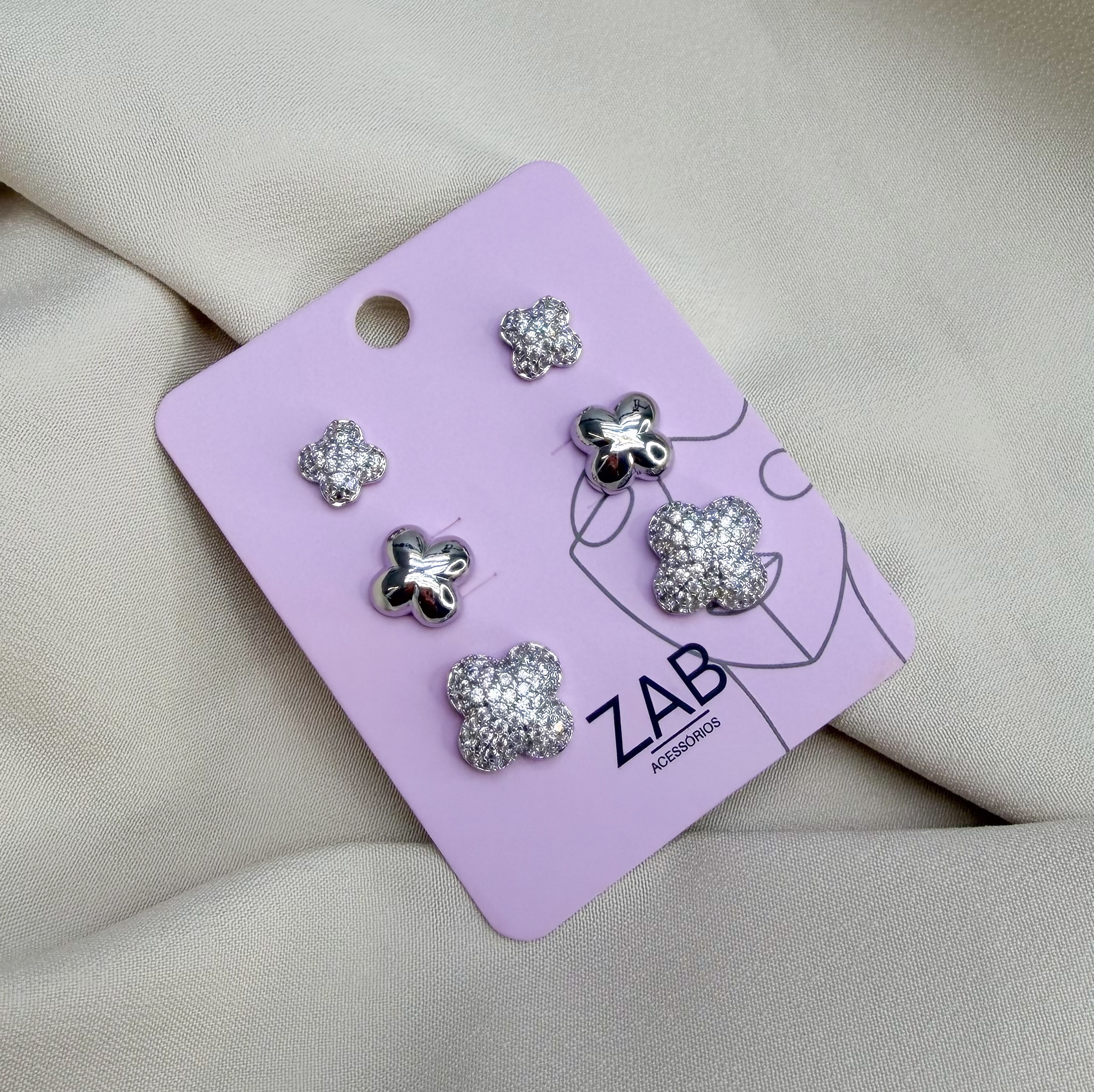 Trio de brincos FIJI zirconia folheada a prata