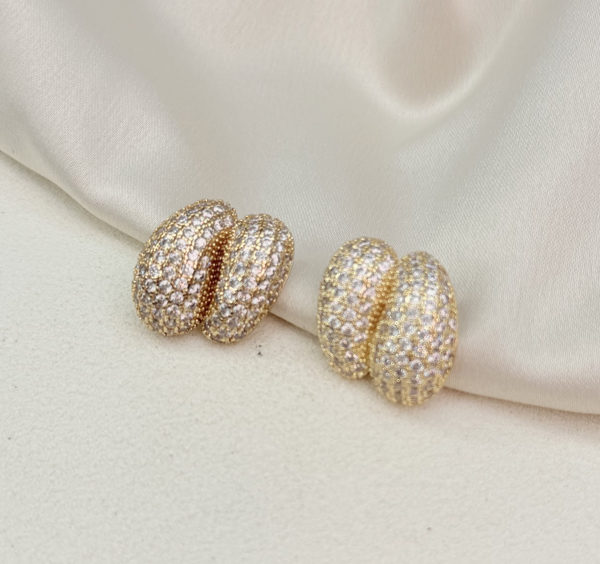 Brinco JOBI gotas cravejados com microzirconia folhada a ouro