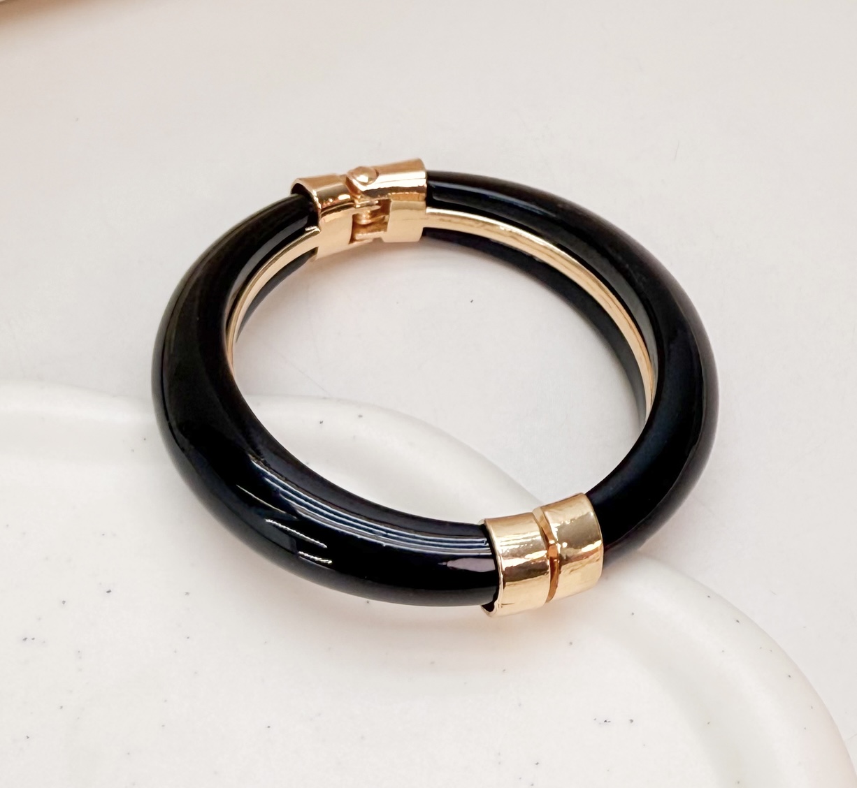 Bracelete SONIC resinado cor preto basic folheado a ouro