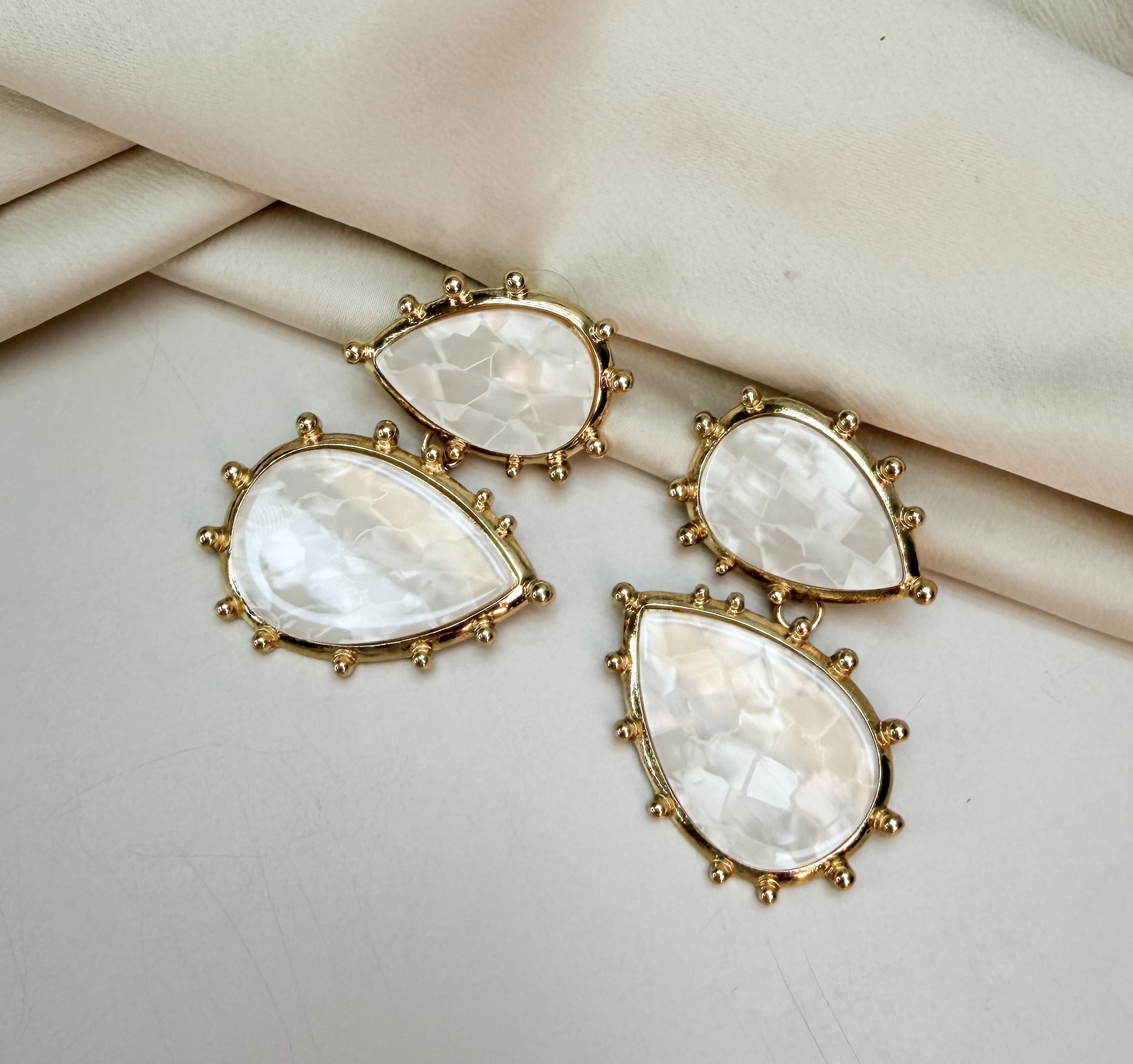 Brinco NORABEL orgânico MADRE PEROLA meio oval folheado a ouro