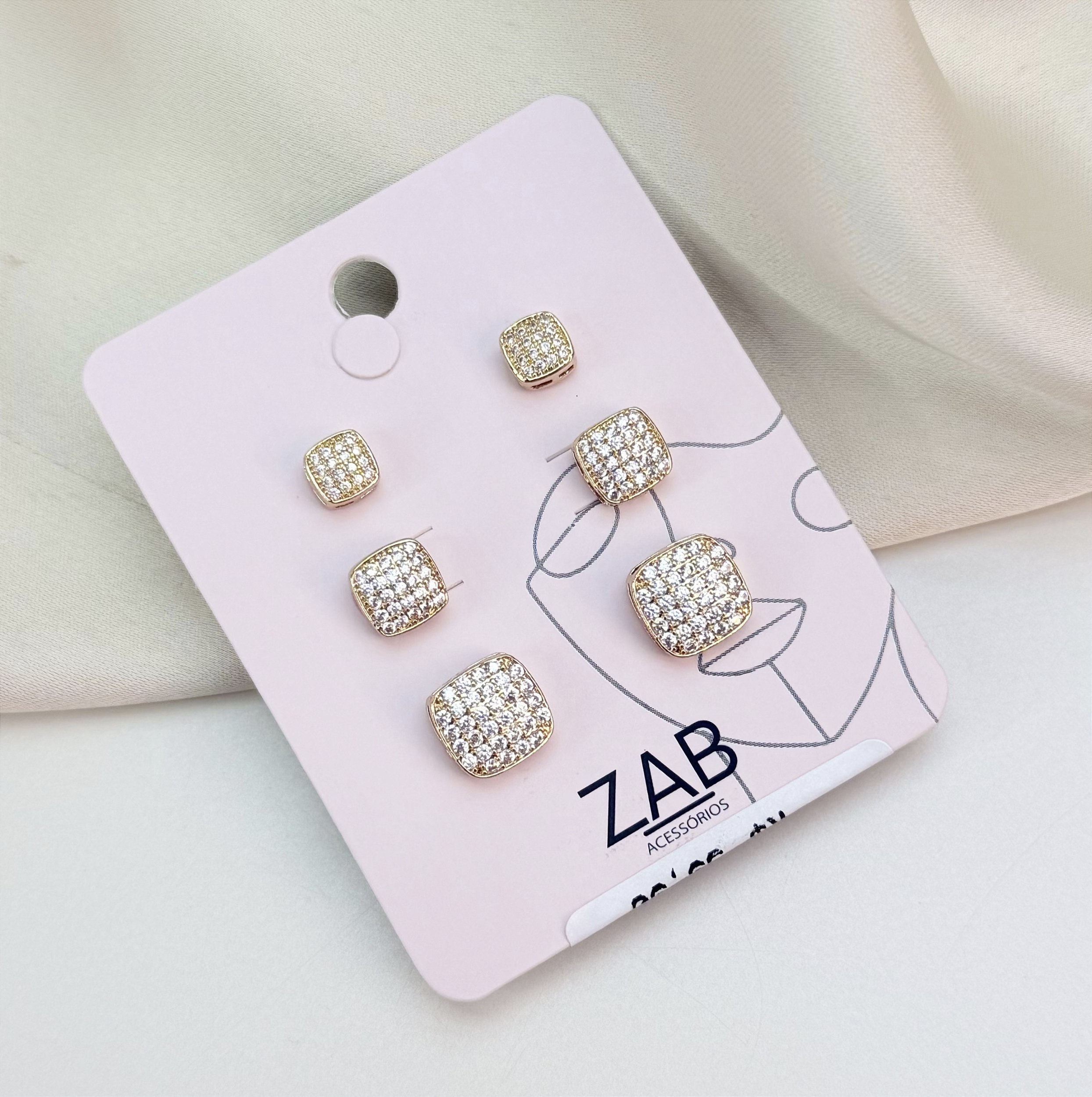 Trio de brincos EWAN zirconia folheada a ouro