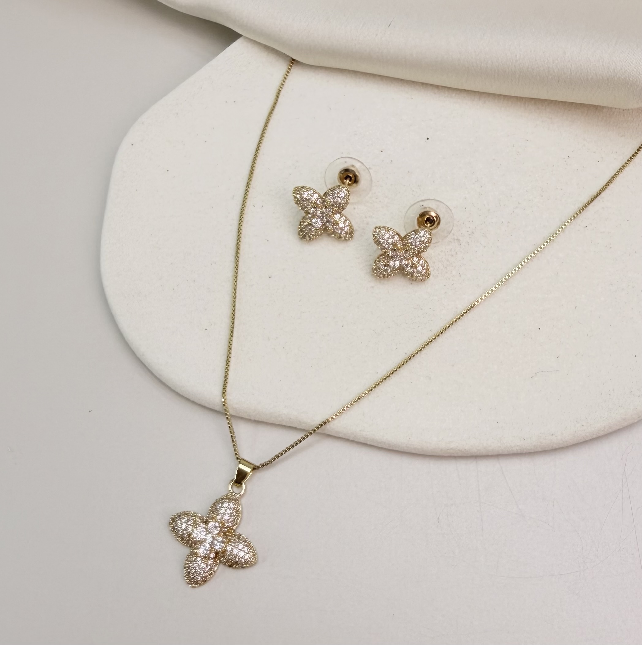 Conjunto JAM colar e brinco cravejado zirconia folheada a ouro