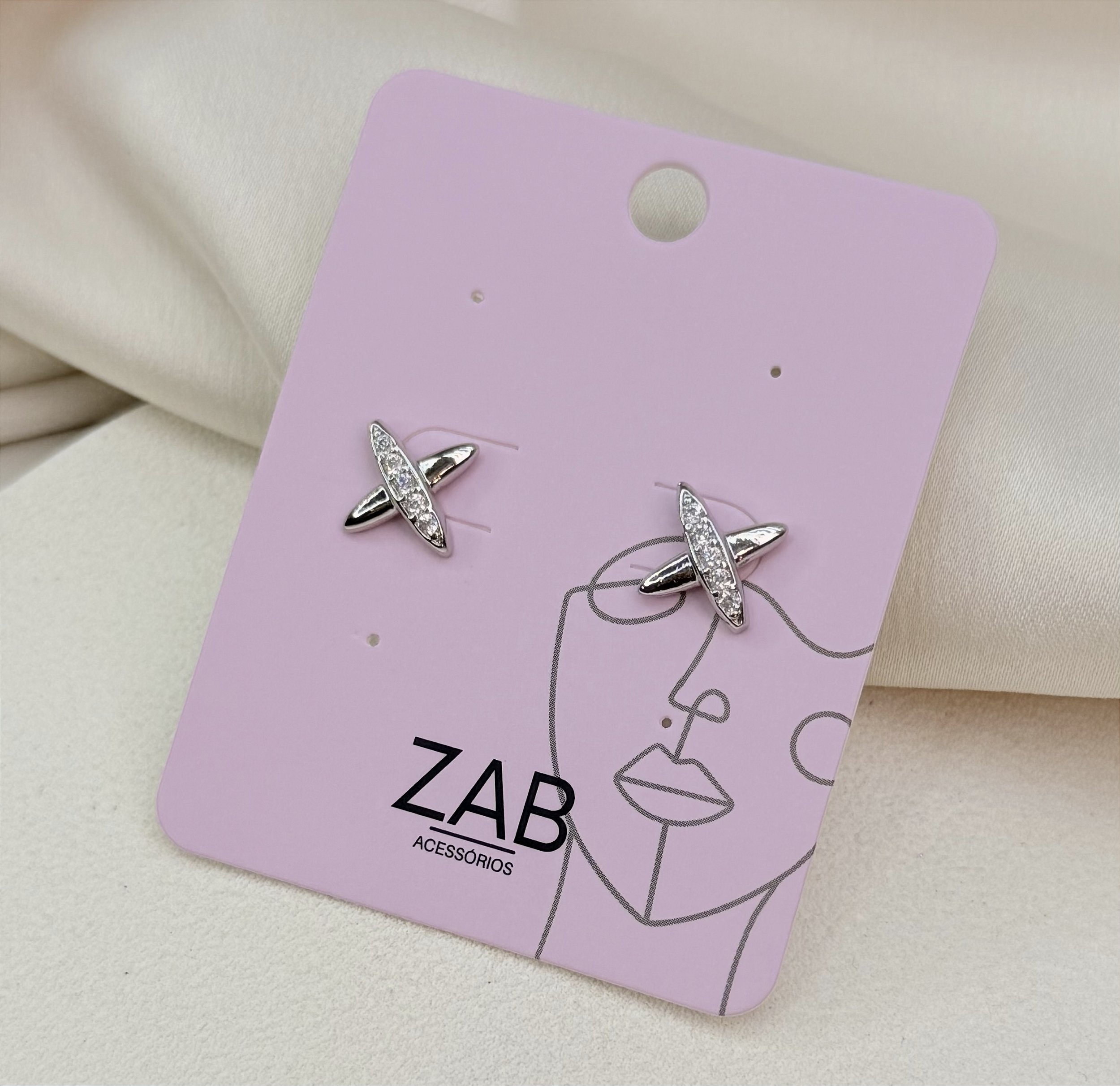 Brinco MOCHI mini X cravejado de zirconia folheada a prata