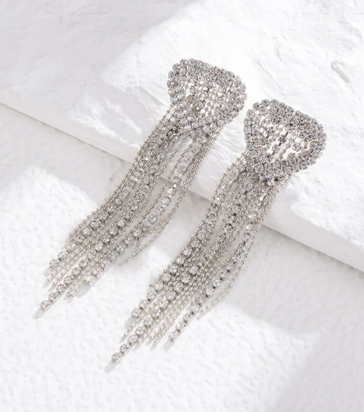 Brinco MARINA party coração franja strass