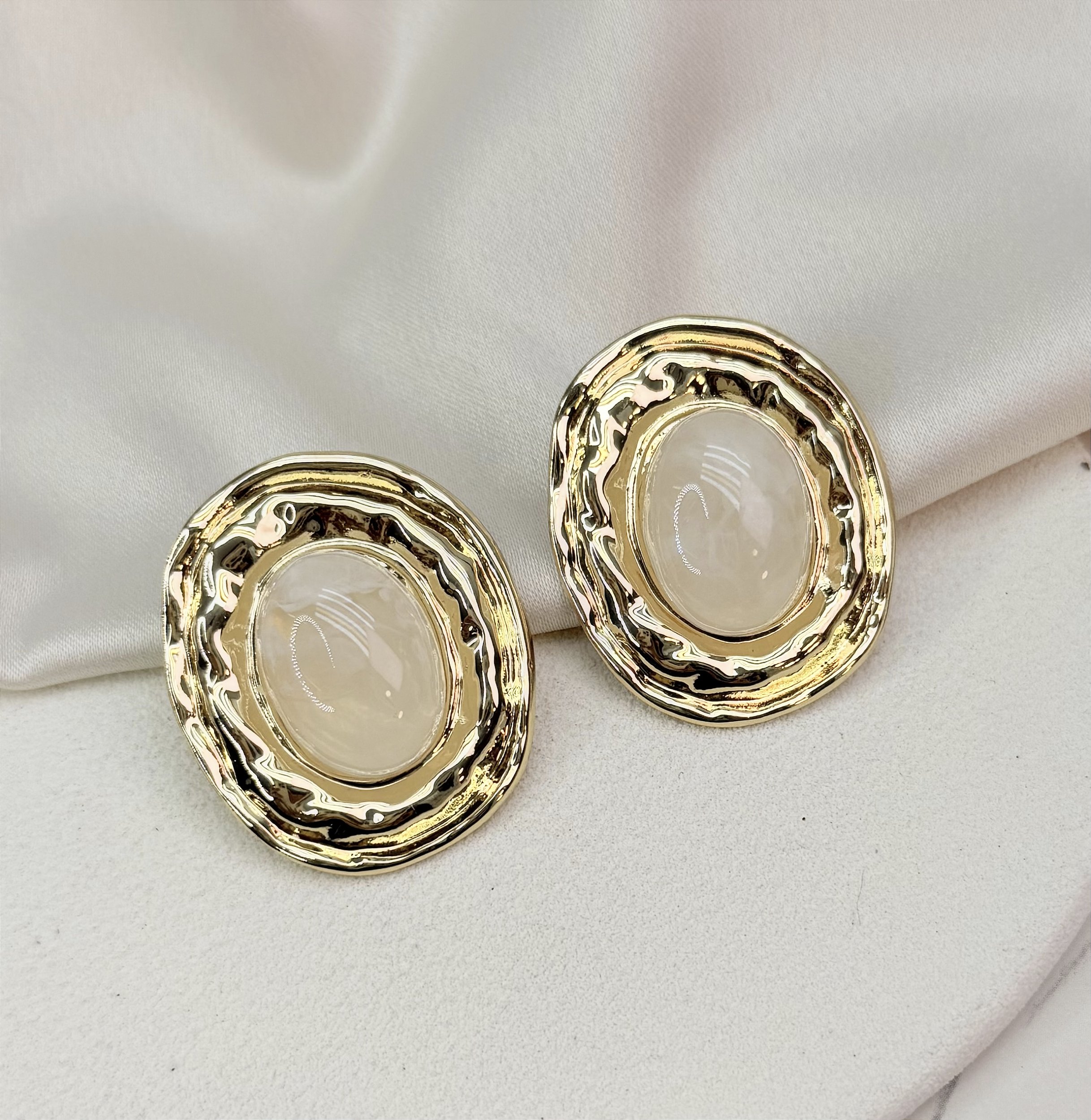 Brinco CHAJA organico pedra OFF folheada a ouro