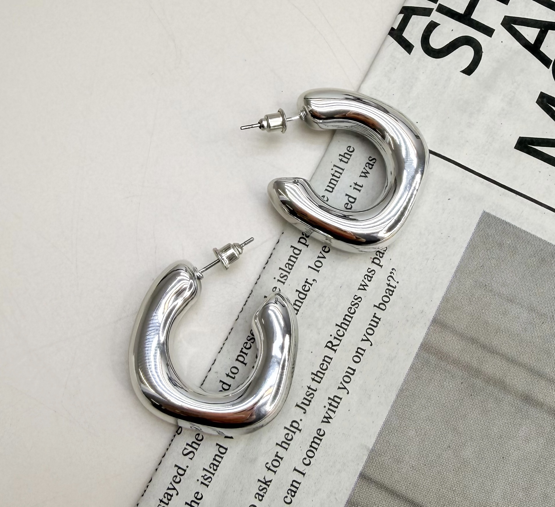 Argola VANU tubo organico prateado M