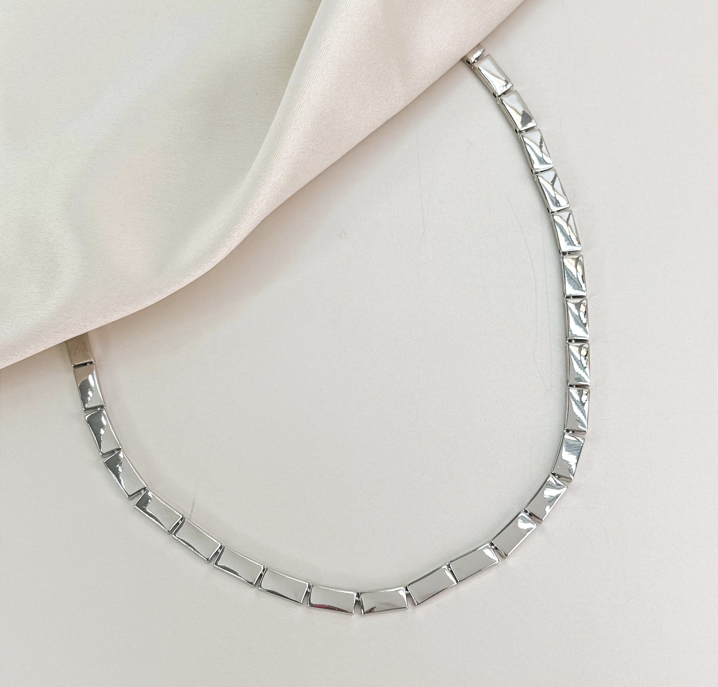 Choker PERRY riviera plaquinhas folheada a prata