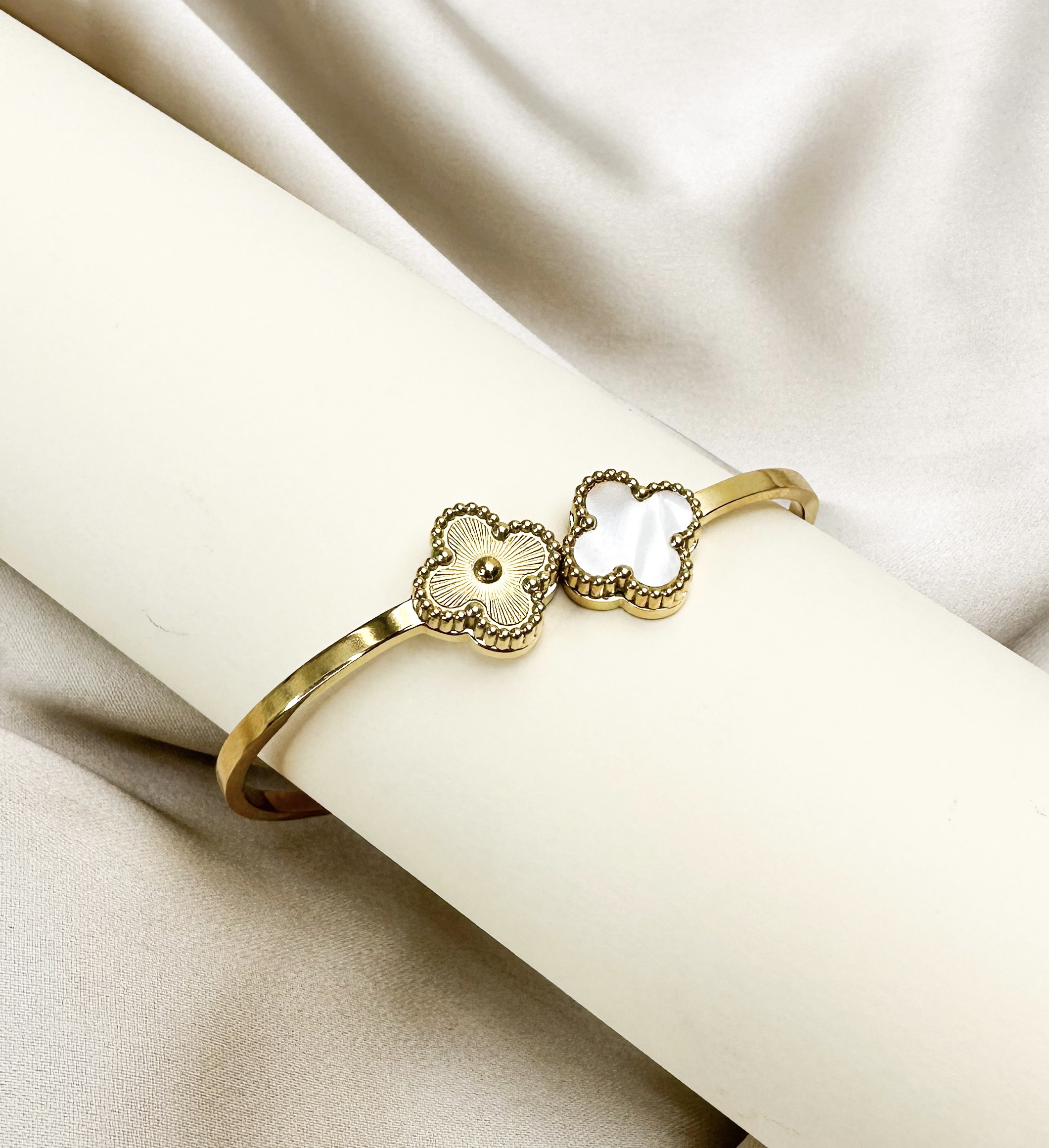 Bracelete MAG VAN trevo madre pérola folheada a ouro