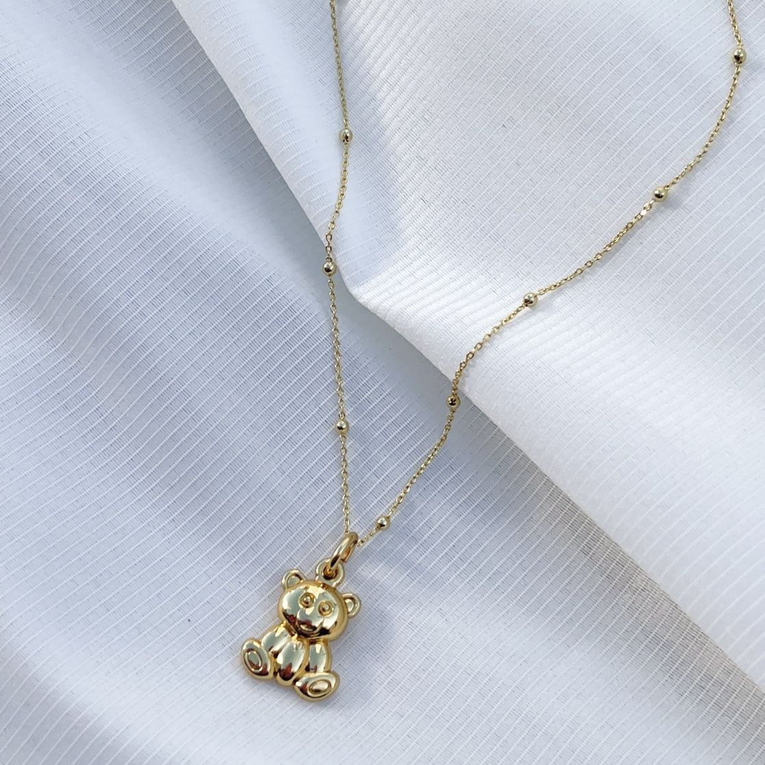 Colar TASSIA pingente urso corrente mini elos com bolinha banhada a ouro