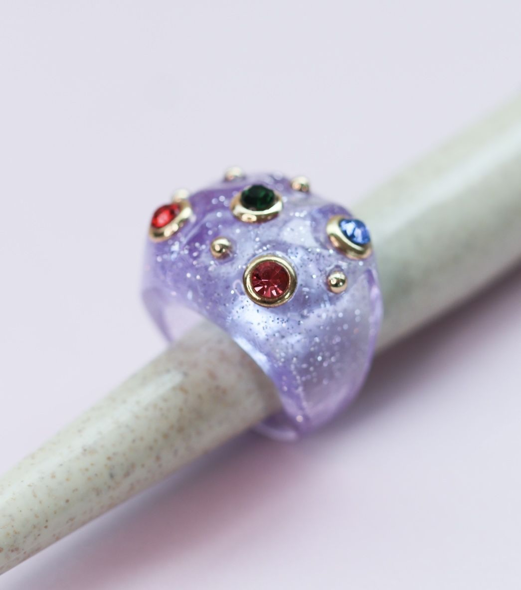 Anel LARYSSA de acetato roxo acrílico com pedras colors