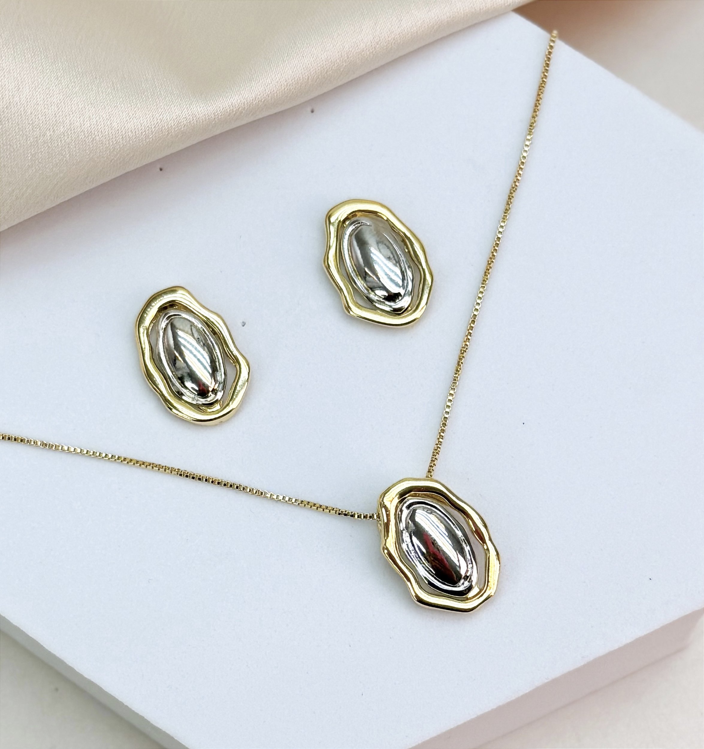 Conjunto PILAR colar oval liso folheada a ouro