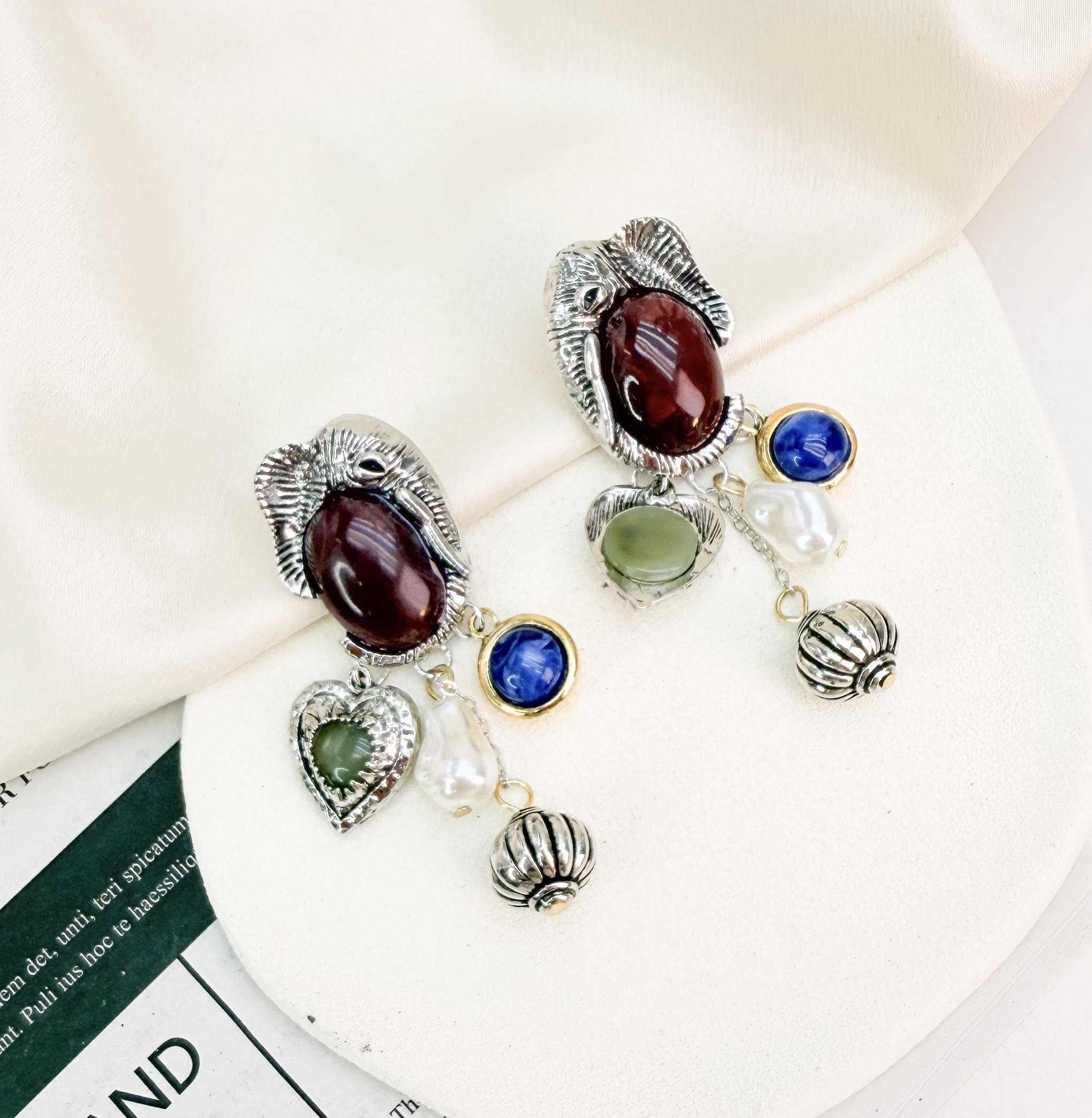 Brinco MALVA boton mix de charms folheado a prata