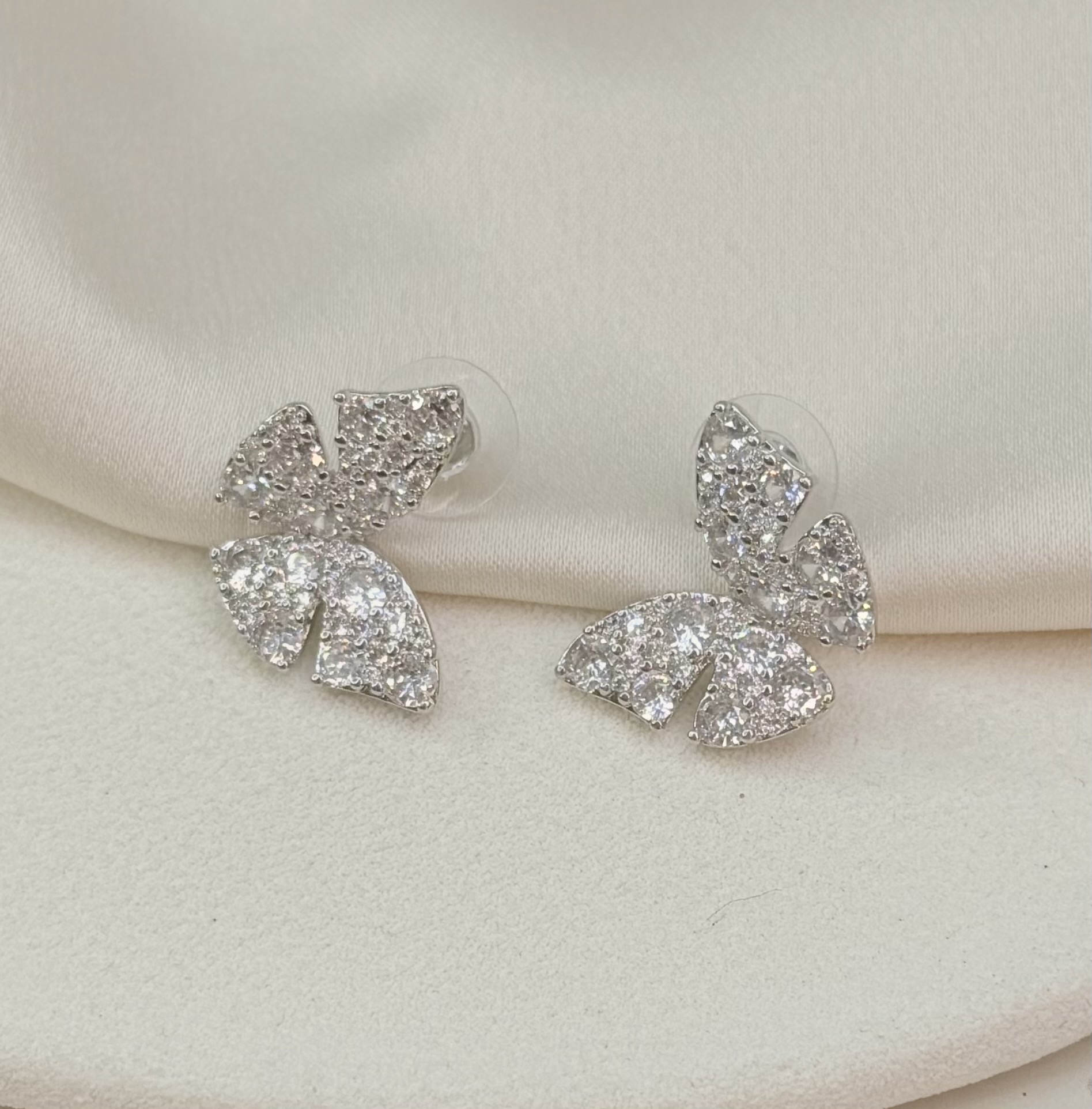 Brinco MONZA borboleta cravejada com microzirconia folhada a prata