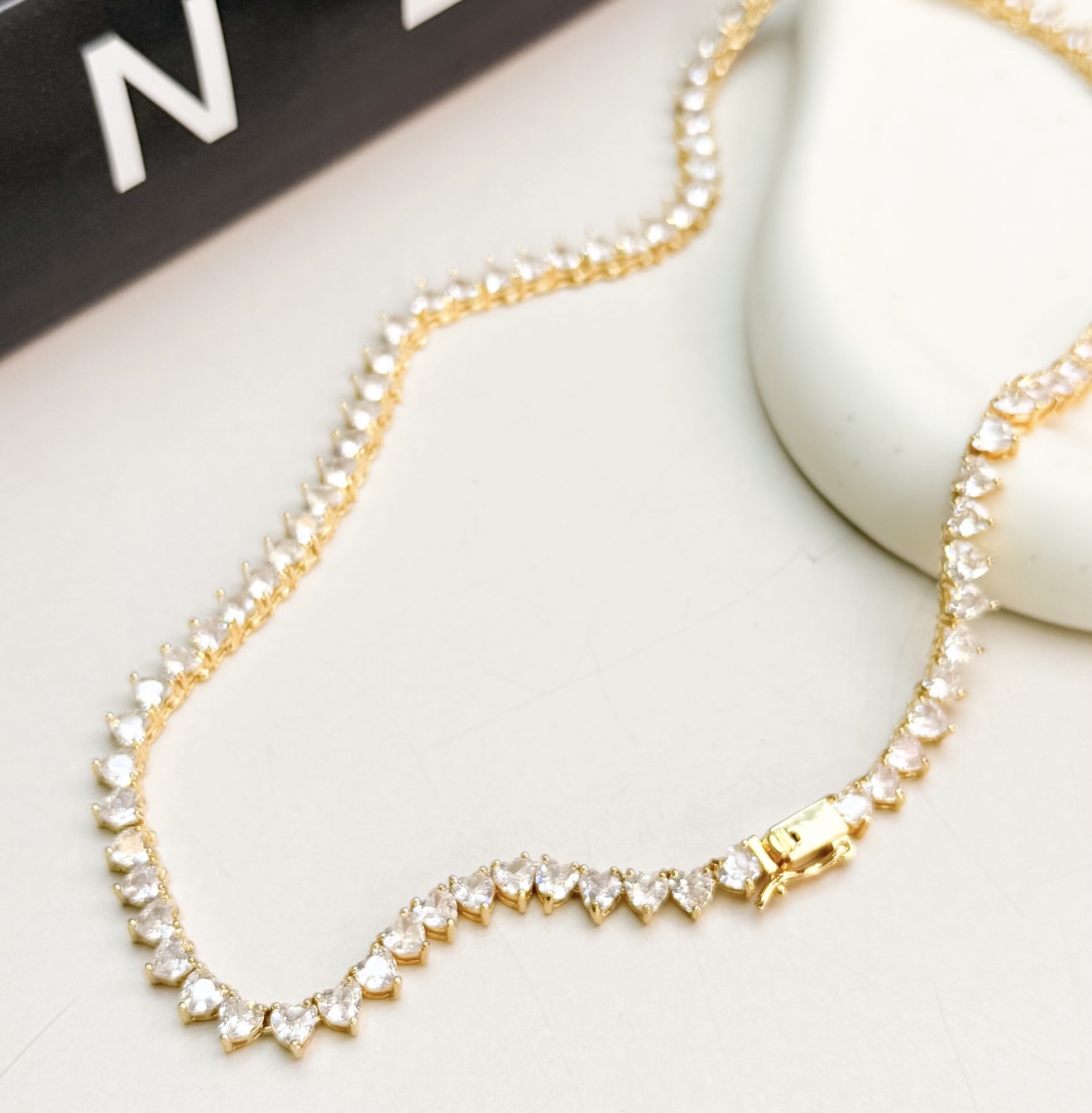 Colar CHER riviera coração 3 pontas em Zirconia cristal premium folheada a ouro