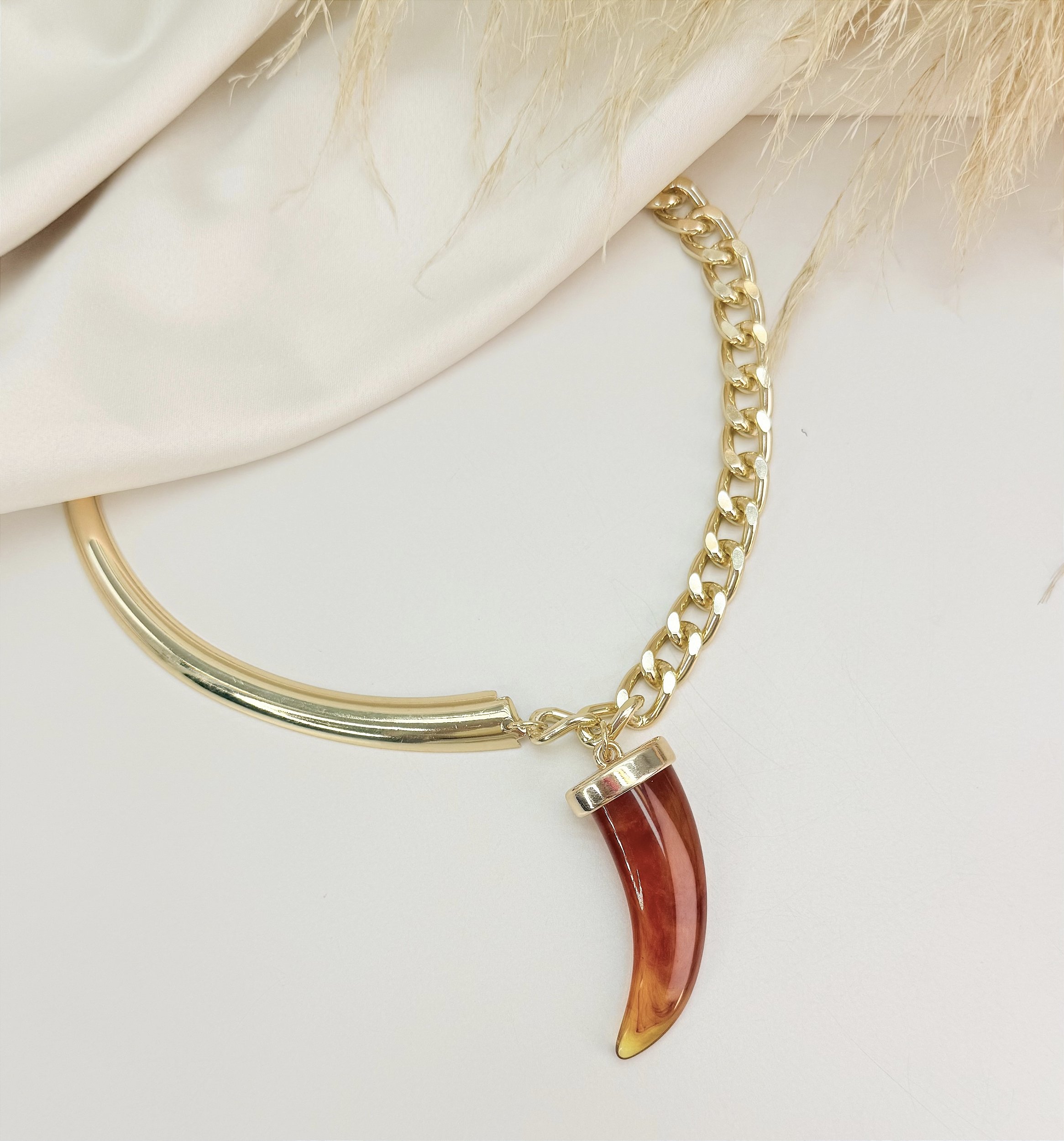 Choker aro ALESSIA com corrente e pingente dente Folheada A ouro