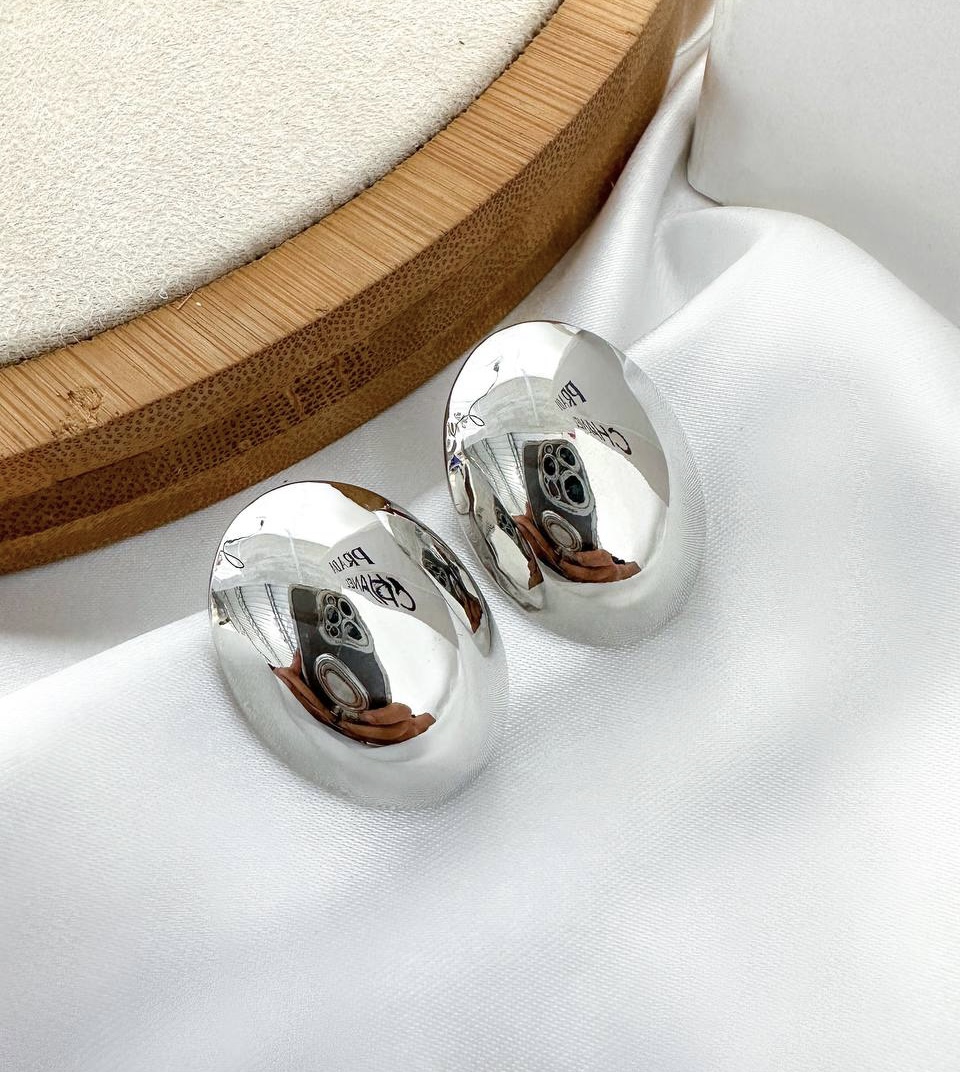 Brinco PENNY boton oval folheada a prata