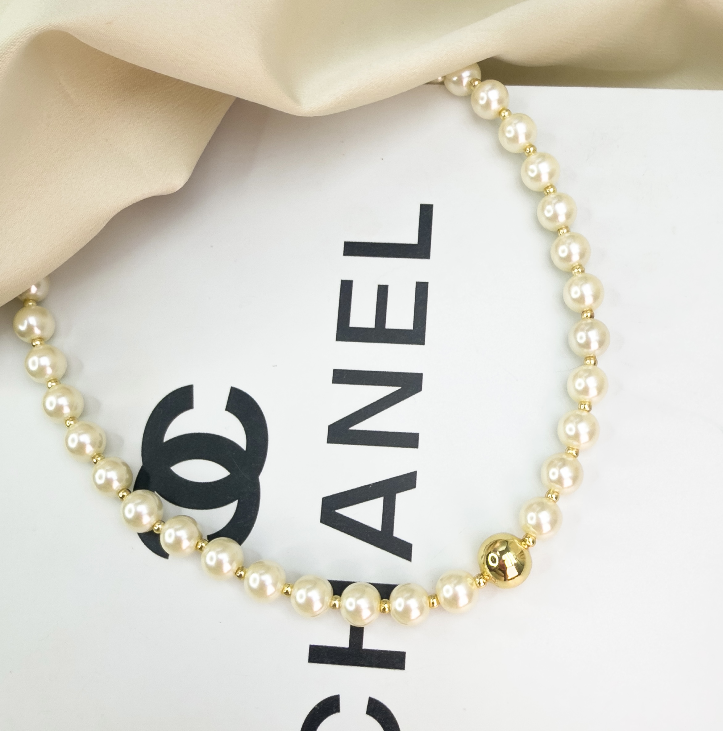 Colar ERON pérolas com esfera central dourada