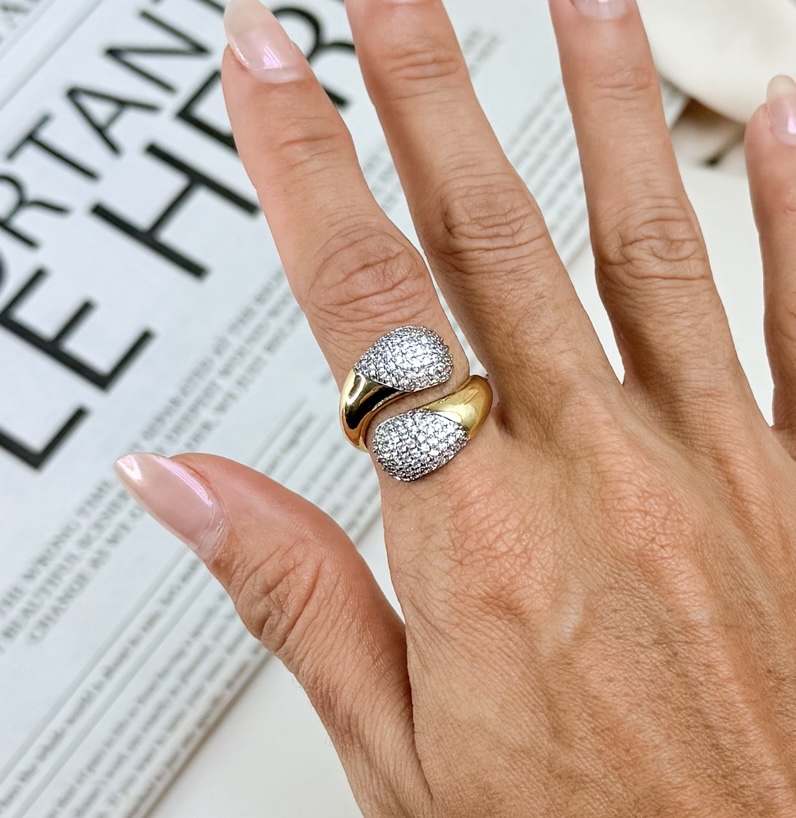 Anel HANS gotas cravejada com microzirconia folheado a ouro