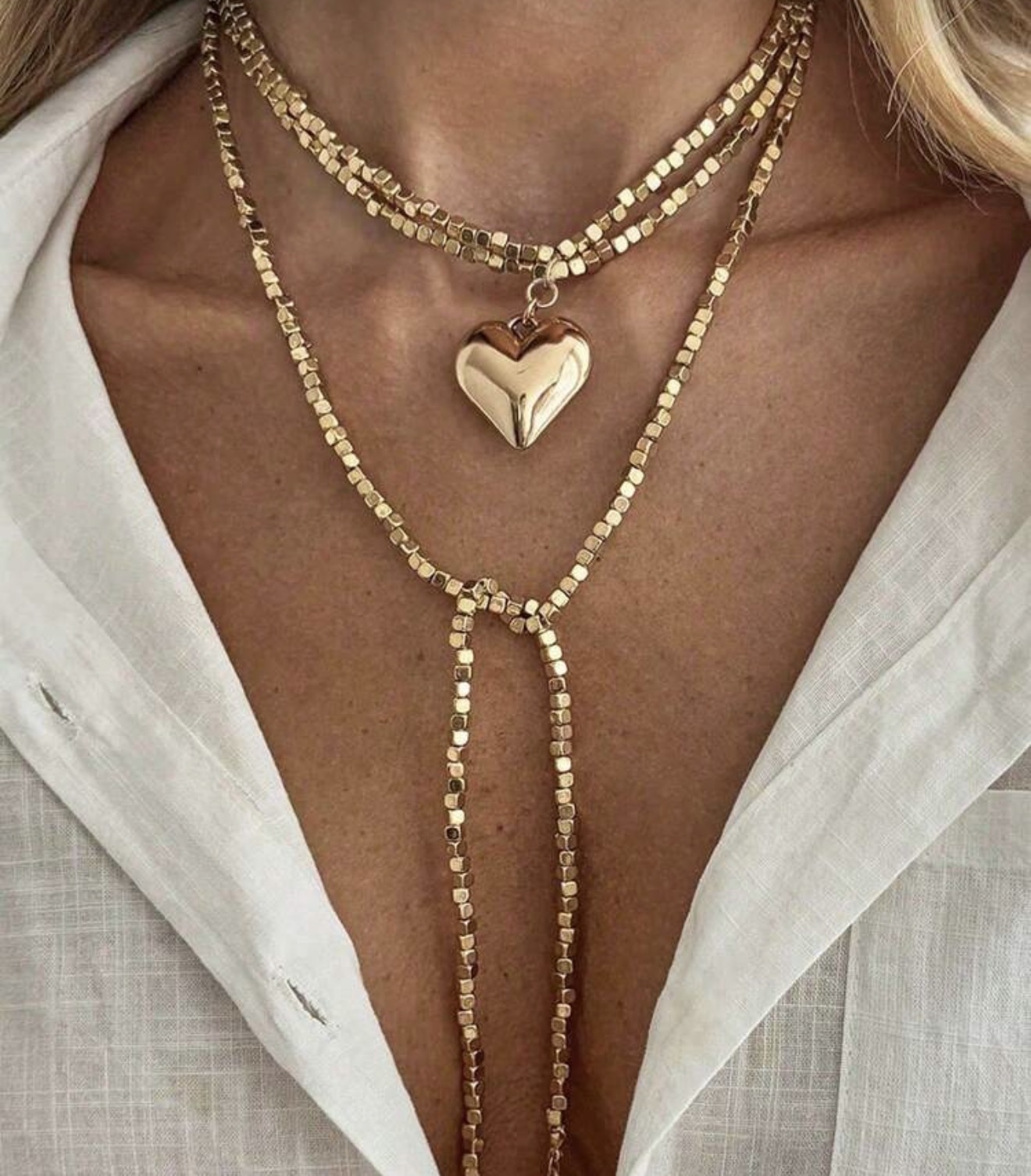 Colar LOVE longuinho coraÇão folheado a ouro